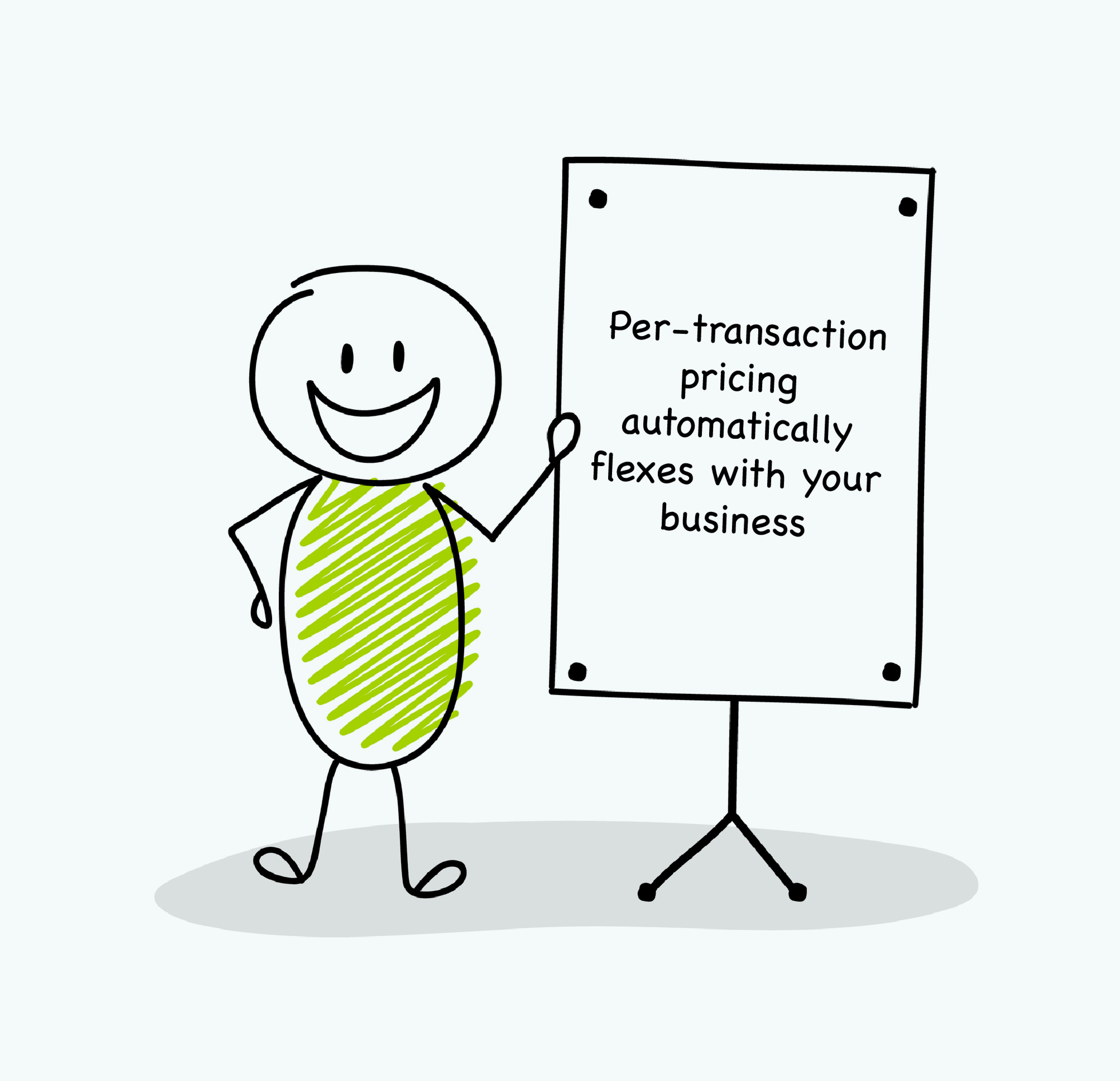 Pricing is on a per-transaction basis, not a per-hour basis. Every monthly invoice shows the precise calculation of fees and is directly linked to your volumes of activity.